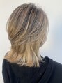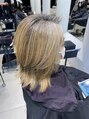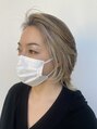 顔周りに集中した白髪をデザインの一部としてとりこみ、襟足はブリーチで裾カラーに。その他表面の陰影は過去のハイライトを利用しています。(Before参照)顔周りに白髪の量が多く、まばら生えている方におすすめです。カットはスタイリストNATASHAが担当。