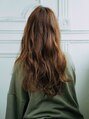 ふわっと波巻きロングスタイルです。全体的に重めのシルエットにし、巻いた時のふんわり感を重視しています。全体が重めのシルエットに対し、前髪を薄めに作ることで抜け感ができて、重くなり過ぎないスタイルに仕上げました。