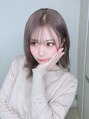 グラビアの阿久津まおさん♪ブリーチして、ラベンダーグレージュ♪カットはミディアムの軽め外ハネスタイル♪♪