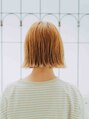 切りっぱなしボブですがハイトーンなので重くみえないのがこれからの季節にちょうどハマるスタイル!バングはシースルーなので透け感と奥行きがあるのでボブに挑戦したい方はとてもやりやすいボブです。外ハネアレンジもかわいいです!