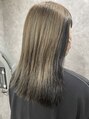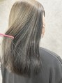 TOPだけケアブリーチを使用してハイトーンにしてベージュカラーをオンしてます。おろすと背先にかけてコントラストハイライトになり、結んだり分け目を変えたりするだけで、ヘアデザインが変わります!新しいカラーデザインに挑戦したい方はぜひ!