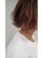 春に向けて薄めのピンクでイヤリングカラー。カットは切りぱなしのボブ。アレンジもしやすく誰にでも似合うスタイル。