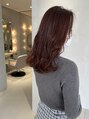 カラーで明るかった髪をブリーチ無しでワインレッドカラーに♪パキッとしすぎない深みのある赤も可愛いです☆