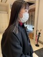 全体のダークカラーにホワイティ―ベージュのインナーカラーを。コントラスト強めで、カジュアルモードスタイルに。