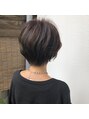 襟足、首周りをすっきりと見せるコンパクトショートボブ。ポイントにグリーンのハイライトをインナーに入れて遊びのあるスタイル。