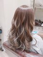 ブリーチを使用しベースにコントラストをつけ、上からホワイトグレージュをオン☆