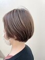 首もとをキレイに魅せるショートボブ。流しやすくほどよいまるみのあるスタイルは大人女性の方からも人気です。ブリーチを使わずにナチュラルに馴染むハイライトでほどよくコントラストを♪グレイカラーで気になる部分はカバーして全体は暗すぎない印象に♪