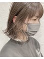 耳上にブリーチをしたベースに、流行りのくすみ系ベージュで透明感UP☆シンプルなボブでもオシャレ感◎です!