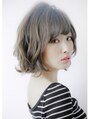 カラーはハイトーンのアッシュブラウン。 お肌に合わせたファンデーションカラーにより目もとを強く見せ、肌を滑らかに白く見せます。 スタイルは顎先に向けた前下がりボブ。丁寧にスライドカットを入れて自由に動く髪の束を作りました