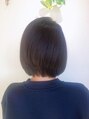 前下がりにして首元をスッキリしたスタイルです。襟のある服装を着るときもこのスタイルなら邪魔にならず変な癖がつきづらいです!顔周りには長さを残したい方にもおすすめです!!