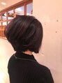 カットはショートボブで、前下がりのラインは角度をつけて顎先に向かって繋げてあります。カラーはブリーチハイライト後に、バイオレットでダークめに色味をつけました。