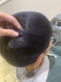 毛先は以前のブリーチが残っていたのですが、3トーンのブルーアッシュでトーンダウンすることで根元の地毛部分とも綺麗に馴染んでまさにブルーブラック!!