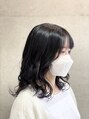 前から見た時に鎖骨下ら辺になる様にバッグ長めの前上がりスタイルです。顔周りのみレイヤーを入れて、バックサイドからバックにかけてはほとんど段が入ってません。