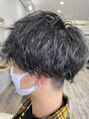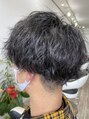 サイドから襟足にかけてツーブロック。マッシュスタイルにツイストスパイラルをかけました。