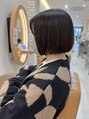 えりあしギリギリでぱつっとしたラインのあるボブです(^^)段の入っていないボブでまとまりよく、少しだけ前下がりのラインで小顔効果があります!耳にかけてもスッキリ可愛いです(^^)