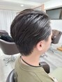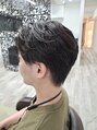 グリースでオールバック気味に流したアシンメトリースタイル。パーマでワンカールつけてあげるとより◎。