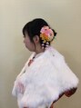 編み込みアップスタイルつまみ細工の飾りをつけたスタイルです