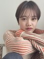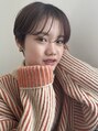 シアーなオレンジベージュで柔らかく優しい印象のショートスタイル。長めのバングはキッチリ分けずになんとなくセンターで分けてルーズさをプラス。どちらかに分けるときもバングをおろしすぎずシースルーに。
