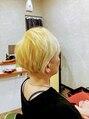 外国人風ショートスタイル 、内側は五厘刈りの2ブロック。凄く素敵な個性のある方でしたのでブリーチ抜きっぱなしのデザインに仕上げてあります。良くお似合いです。これだと白髪も全く気になりません。(笑)