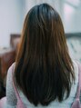 ナチュラルなストレートロングスタイルになります。乾かすだけの簡単スタイリングです。ロングストレートだと重く見えがちですが、オレンジ系の少し明るさのあるカラーリングで、軽さとツヤをプラス!コテで巻いてもイメチェンできます。