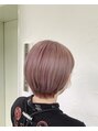 カットはアゴラインのショートボブ。カラーはブリーチしてベースをしっかり明るくしてからくすんだスモーキーピンクカラー。色落ちも可愛いです。