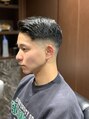 周りをスキンフェードで刈り上げ7:3でかっちり分けたバーバースタイルです。分け目にラインを入れることでメリハリをだしました。