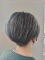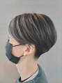 耳周りはツーブロックで、襟足は刈り上げでグラデーションにしてスッキリ仕上げて、トップは長めをキープ!色味は透け感を出すのにブリーチは必須で!グリーンミックスのグレーをONカラーに☆