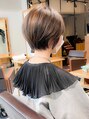 ナチュラルなショートスタイル。頭の丸みに合わせつつトップや後頭部にボリュームを出しやすく、毛先にはショートの軽さを活かした動きをつけやすくするカット。透明感のあるダークトーン設定で、落ち着きのある綺麗なショートに仕上げました。
