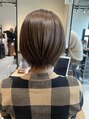 【気に入って頂いたスタイルはブックマークして、ご来店時にご提示ください】バックのくびれで頭の形を綺麗に見せ、アゴラインの前下がりで輪郭をシャープに見せてくれます!スッキリ小顔にみえる大人な印象の前下がりショートボブ!