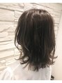 透明感あふれる柔らかなベージュ系カラーにミディアムレングスでレイヤーを入れて、ふんわりひし形シルエットに♪