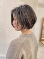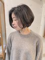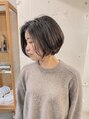 フラットラインのショートボブ 。内側の量をしっかりとることで、厚みがなくなり自然な丸みがシルエットに現れます。扱いやすく跳ねにくいショートスタイルです。