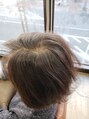 根元をザクロペインターで染め、毛先はオイルカラーで染めております。そうすることで色落ちの気になる毛先にはしっかりブラウンを入れて色持ちを良くし、根元はザクロペインターで優しく染めることができます。
