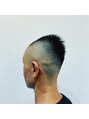 クラウンに長さを残したフェードスタイルです。もみあげ~耳周り~襟足の生え際は軽めに剃っています。