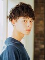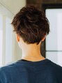 サイドをタイトに、襟足からナチュラルにつながるラインで刈り上げなのに柔らかさのあるパーマスタイル。フロント部分に大きくカールの動きがくるように巻いたのがポイント☆