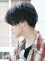 ベースはツーブロックのマッシュショート。トップフロントを長めに設定してくしゃっとニュアンシーなパーマをかけたら適当にセットするだけで雰囲気がでます。