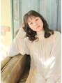 前髪薄めで顔まわりにレイヤーを入れて小顔にみせてくれる効果を出します。フォワード、リバース巻きを混ぜてミックスに巻いたら軽く崩してあげてゆるふわ感をだします。ハイライトをいれて立体感をだしてもOK。
