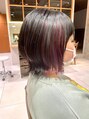 インナーカラーでレッドパープルを入れてデザインをプラス!伸ばしかけもミニウルフで小顔ヘアに!