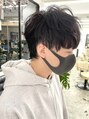 マッシュウルフです。サイドはツーブロックにしているのでスッキリした印象になります。緩めのパーマで動きがある雰囲気に。クセ毛の場合はパーマなしでもOKです。メンズ/カット/クセ毛/ウルフ/マッシュ/刈り上げツーブロック/パーマ/スパイラルパーマ