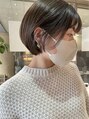 アッシュベージュで透明感のあるカラーに、丸みのあるショートボブで大人っぽいヘアになっています。耳にかけるとすっきりしてより可愛い。
