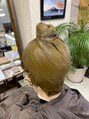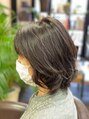ハネやすい毛先のクセをいかして柔らかな印象に仕上げたミディアムボブマスクありでも華やかさがあります。