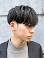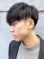 サイドとバックをしっかり刈り上げた前下がりのマッシュスタイル。ソフトツイストパーマで柔らかいけど無造作な動きを。