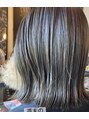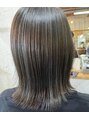 グリーンハイライトシアー感とくすみ感の良いグリーンでハイライトとインナーわミックスしたことで表面は透明感カラー耳にかければインナーはグリーンがしっかりきいて個性も出せるグリーンハイライトカラー
