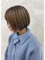 細いラインのハイライトがたくさん入ったミニボブヘア♪今回カラーはしてませんが、1ヶ月前のカラーの退色後でキレイなベージュハイライトに♪ハイライトは入れる人によって表現の幅が変わってくるので是非お任せ下さい!