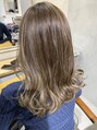 ハイライトにベースはイルミナカラーのアッシュベージュで動きのあるカラーになります。肩下のセミロングのスタイルでお顔回りから、レイヤーを入れた動きのある柔らかいスタイルです。ハイライトは+4400円~