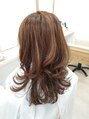鎖骨下あたりの長さにラウンドレイヤーを入れた巻き髪アレンジしやすいスタイルとなっております☆カラーリングでは白髪をカバーできるモカブラウンを入れてうる艶な髪色に☆