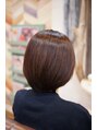 7Lvのラベンダーピンクで、艶と深みを出しながら、カットはグラデーションボブであまり重たくならないようにバランスをとっています。