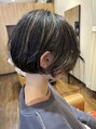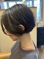 襟足すっきりのミニボブスタイル。1ヶ月前に入れた極細ハイライトがとてもいい感じです。
