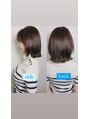 肩下タンバルモリヘアです。サイドとバックを並行の長さにし、耳に掛けています。セラミドたっぷりの酸性ジェルストレートが毎日のメンテナンスを楽にしてくれます!ボブの方でも柔らかい印象に仕上がりますよ!カラーはシアンブルーで透明感をプラス。
