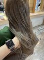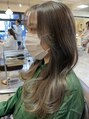 ブリーチ無しWカラー グレージュ ベージュ 透明感カラー 重めロング