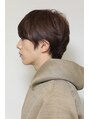 柔らかめの髪質を活かしてマニッシュな印象を出すために全体的に長めに設定。長さは、目と耳にかかるくらいのミディアムスタイル。トップの動きを出せるようしっかりレイヤーを入れました。